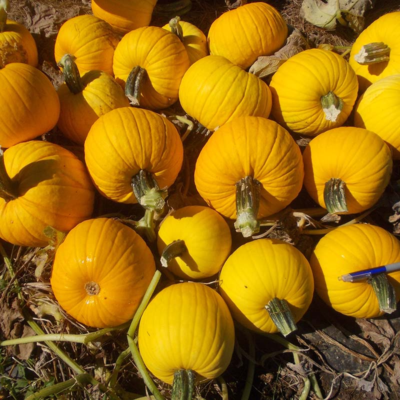 Sunlight is a 5-8 lb. pumpkin with a stunning yellow color and contrasting dark green stem. The semi-bush vines have intermediate resistance to powdery mildew and produce good yields of attractive round fruit. Include Sunlight in mixed roadside displays and inspire your customers to create their own unique decorative combinations.