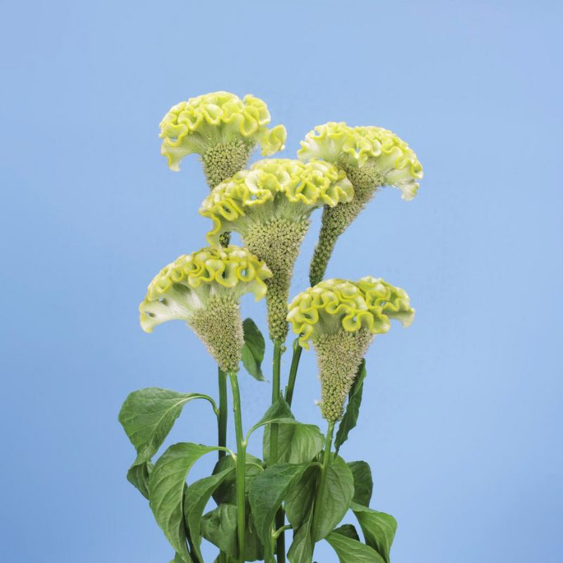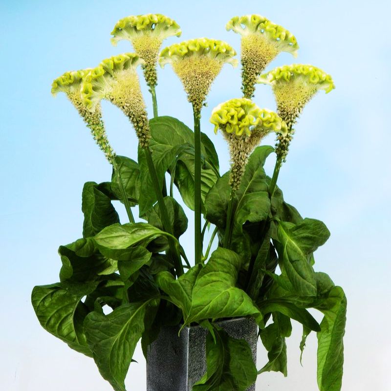 What a great color for a celosia! Florists are bound to snap up this uniquely hued celosia for floral work, and it will be equally popular in mixed bouquets and dried arrangements for roadside stands and farmers' markets. A good item for both greenhouse and field grown cuts, Spring Green performs well in high density plantings.