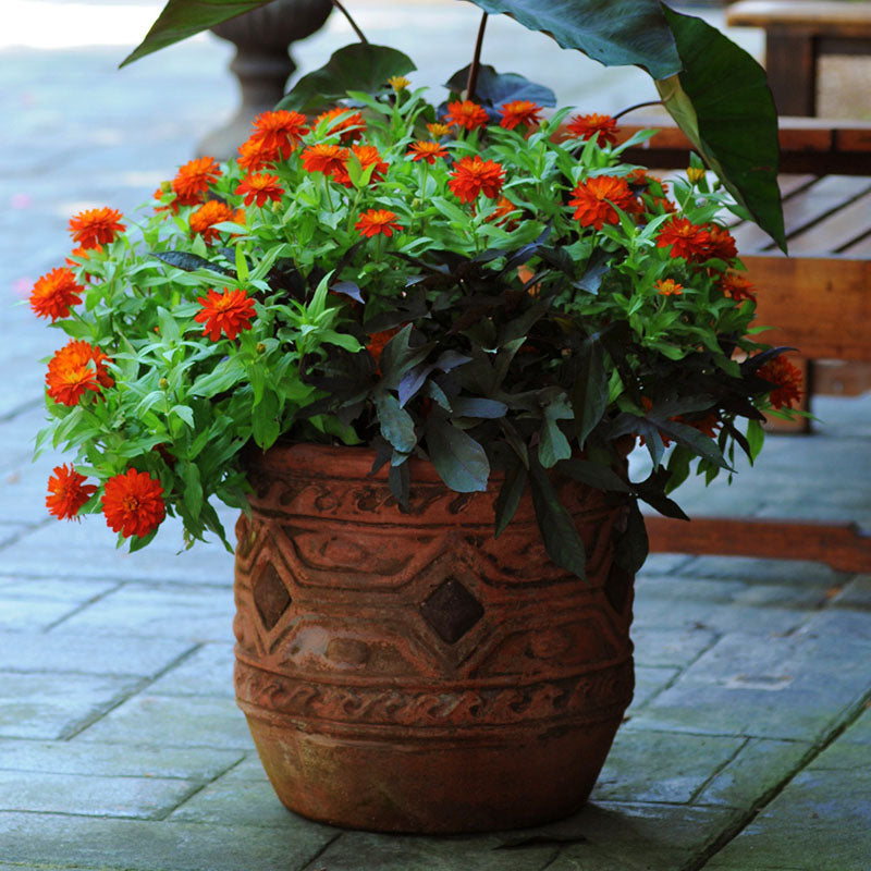 We can't say enough about Zahara Double garden varieties. Zahara Double Cherry is a recent All America Selections winner and with good reason. In our trials we observed the same larger flower size as the Zahara singles (about 2-1/2") when compared with the Profusion double flowered varieties. The highly basal-branching plants create a beautiful symmetrical plant habit that is completely covered first with buds, then with consistently double, vibrant colored flowers that are equally symmetrical. The overall effect is amazing. The Zahara Double varieties make marvelous additions to annual gardens and containers. Even better, they exhibit highly dependable tolerances to leaf spot and mildew diseases, thus assuring prolonged garden longevity.