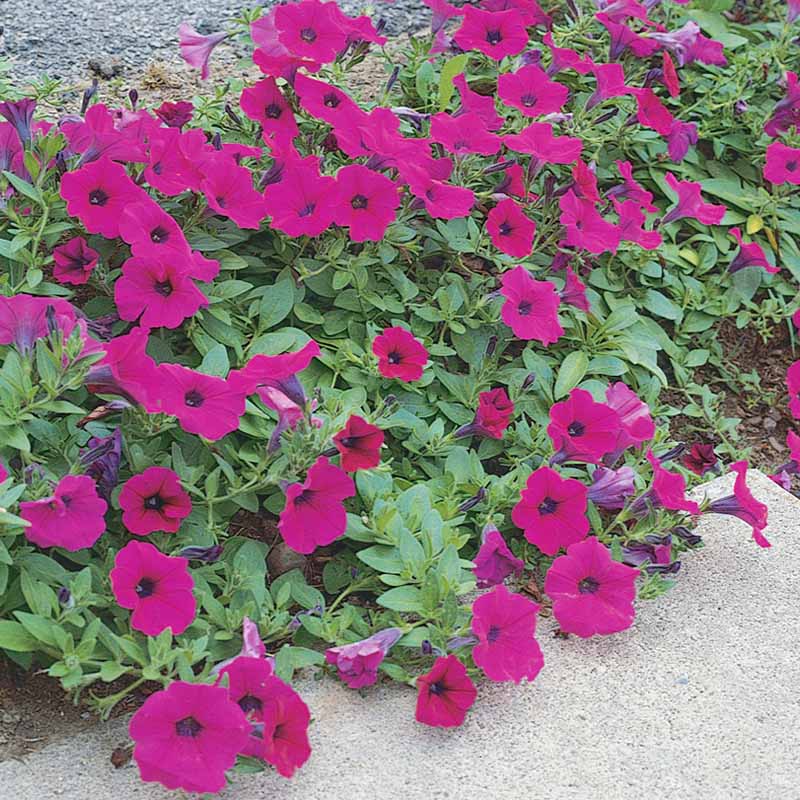 Upgraded to flower up to 12-14 days earlier than its predecessor, Purple Wave Petunia also has larger blooms and flowers more in the center of the plant for a fuller look. The same great flat plant habit and garden performance remain along with the same vibrant purple- magenta that is so eye-catching.