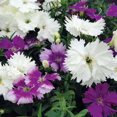 Extra-large, 2 to 2-1/2" blooms dominate the 8-10" basal-branching plants, in a blaze of showy color. Be sure to add the Diana series to your plant selection. You'll not be disappointed! Commonly known as Carnation or Sweet William, Dianthus is great as a garden plant or cut flower.
