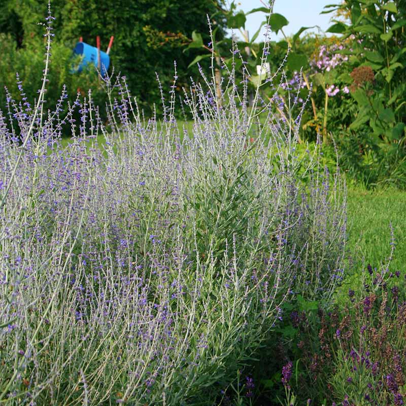 The Perovskia Blue Steel seed produces a compact, densely branched and bushy plant that works well in containers and gardens. You can grow Russian sage from seed in well-drained soil and full sun exposure.