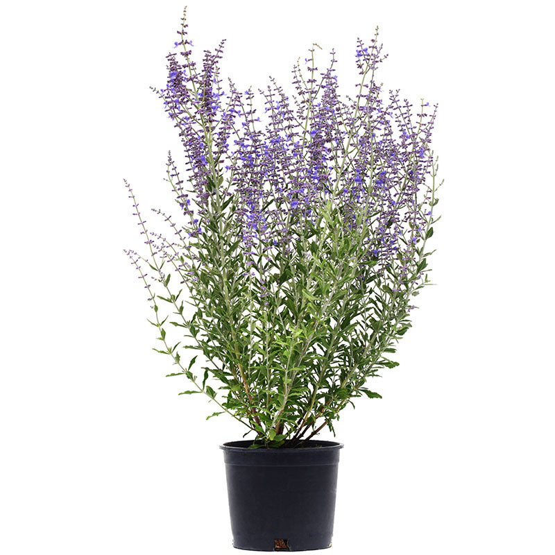 Shorter, bulkier version of Taiga, this perovskia's Silvery green foliage contrasts with tiny blue flowers. Also known as Russian Sage, this is a perennial staple, and now there are seed produced varieties! Sky blue flower spikes beautifully set off silvery green foliage. Hardy in zone 5 and higher, Russian Sage is both heat and drought tolerant - perfect for landscaping and accent plants! The two varieties below each offer specific attributes depending on your market.