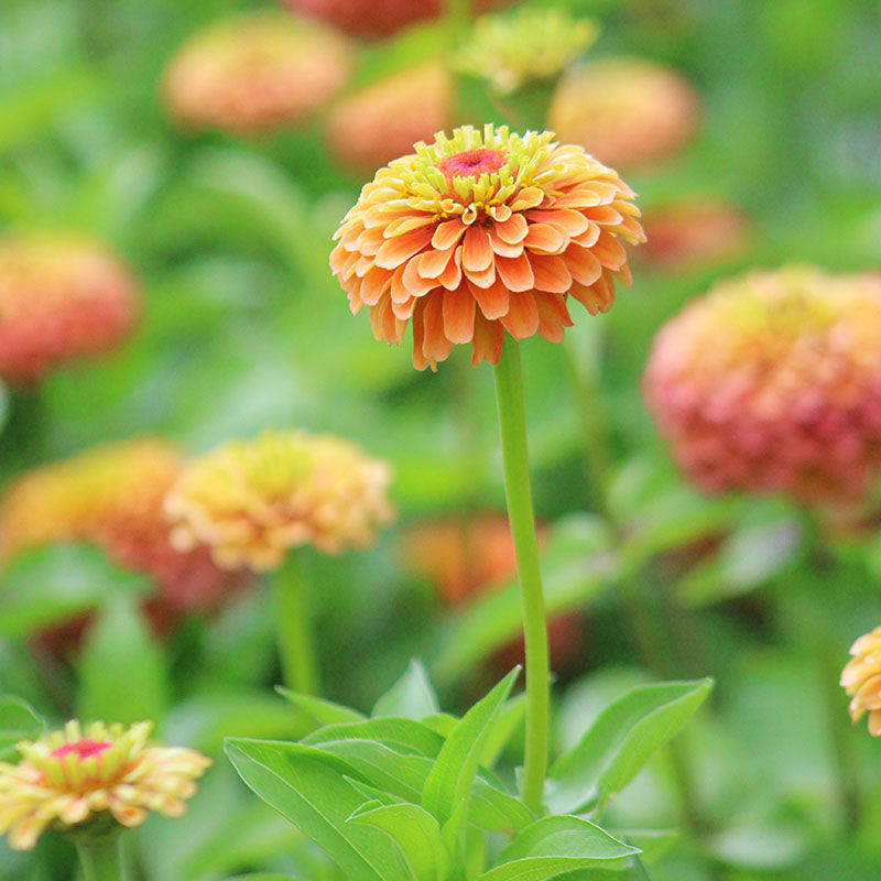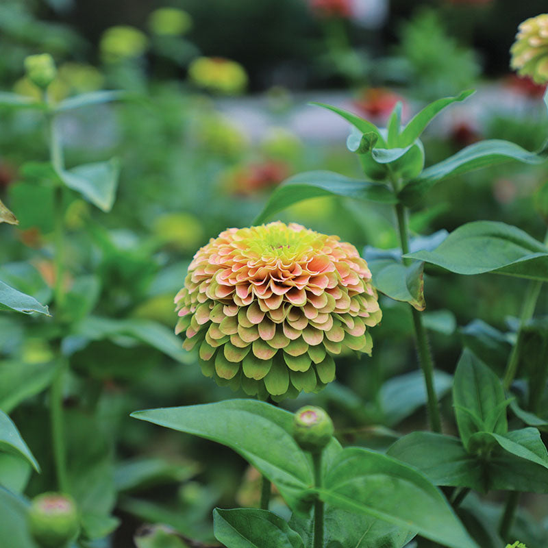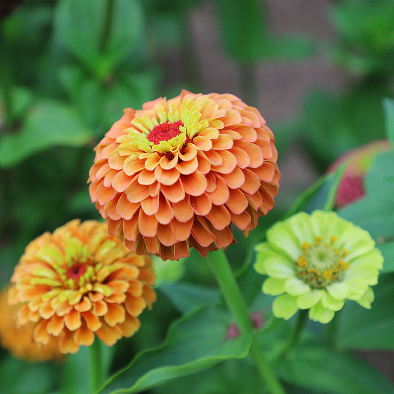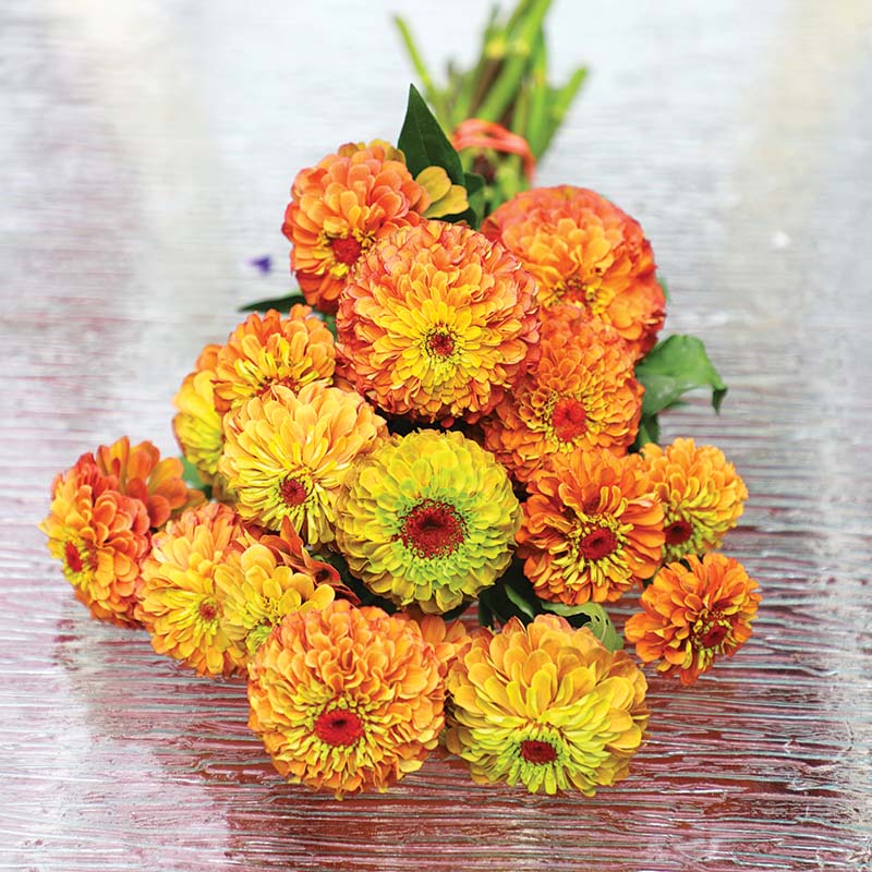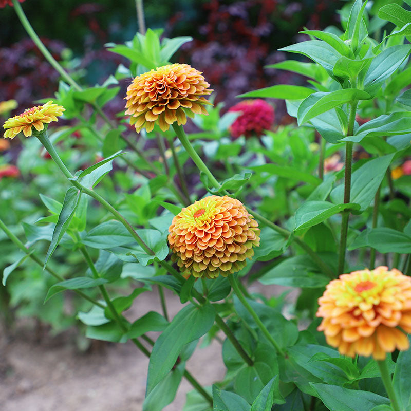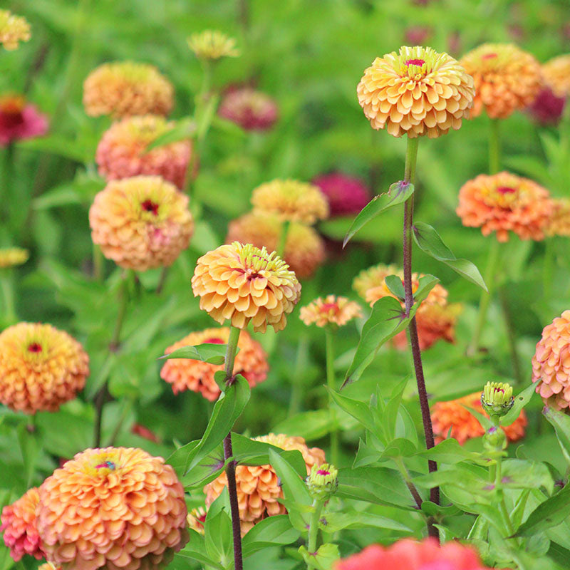 Zinnias are a perfect choice for border plants, large landscapes and a favorite of many cut flower growers. Whether they are used in gardens or in the field, you can expect blooms right up to frost. Deadheading or pinching the central bloom before opening expedites secondary blooms.