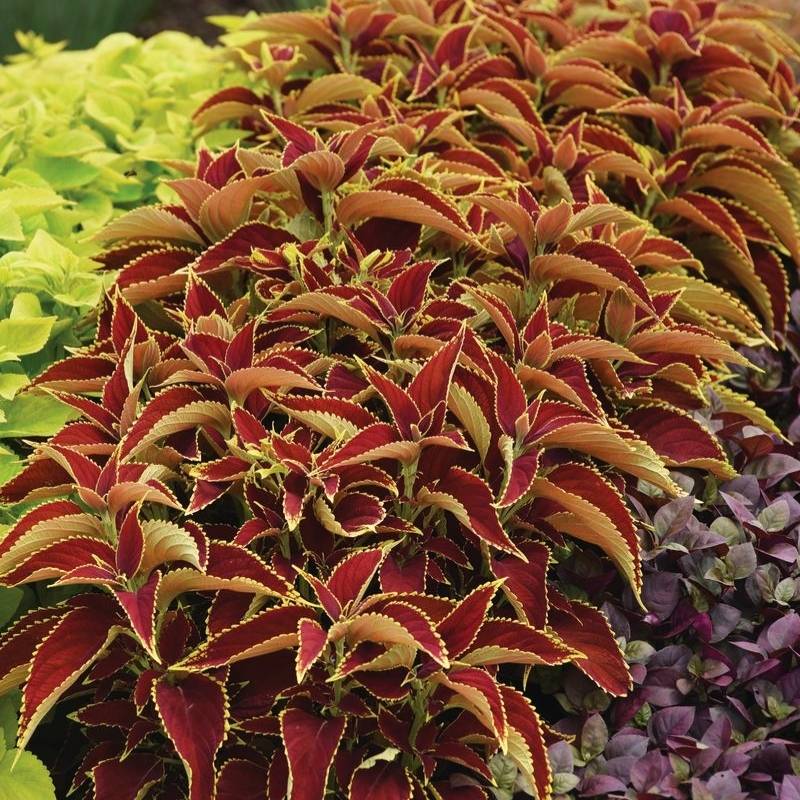 Although all coleus varieties perform well in shady locations, some varieties also tolerate sunny conditions. In drier environments, partial shade is recommended to prevent leaf scorching. All varieties in this collection flower late, thus the accent is on the foliage.