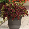 Ruby red foliage is outlined with a thin, chartreuse border on the heart-shaped leaves, continuing on the undersides and stems, adding brightness. Show-stopping color, bold patterns, and rich textures. Pro landscapers and gardeners love these center stage varieties for their great looks and reliable performance in sunny gardens and patio planters. Sell in 4"+ pots and mixed containers.