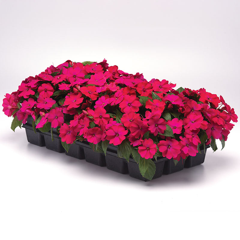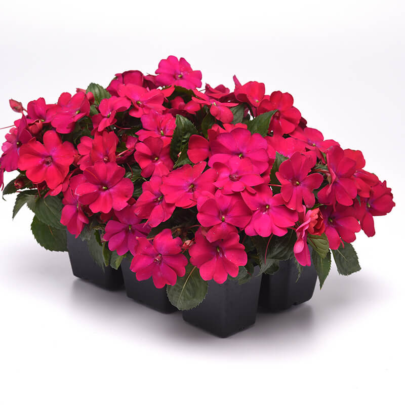 The first interspecific impatiens series from seed provides unbeatable color in full-sun garden beds and containers. Blooms have tropical appeal, with a satiny texture and vibrant, glowing color. Recommended for premium packs, 6"+ pots and single or mixed containers.