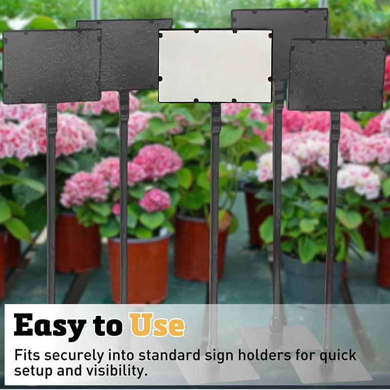 Our 7" x 5" weatherproof blank signs easily fit into the sign holders and stand up in all weather conditions.