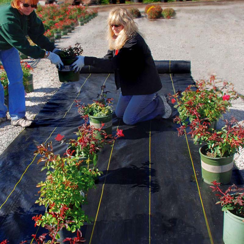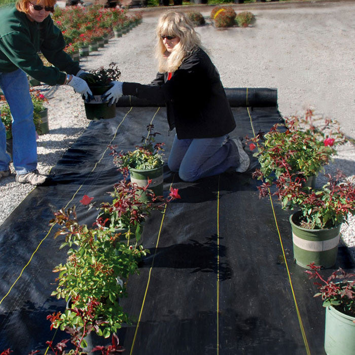 DeWitt Sunbelt woven ground cover consists of 3.2 oz. polypropylene, which resists tearing, puncturing and weed penetration. Sunbelt is ideal for greenhouses, outdoor displays and as a weed barrier for plantings where a weed free environment is a must. DeWitt Sunbelt is striped every 12 inches for aid in plant alignment and is UV stabilized to last even in direct sunlight. Fabric is blocks 99% of light usually lasts 8 to 12 years.