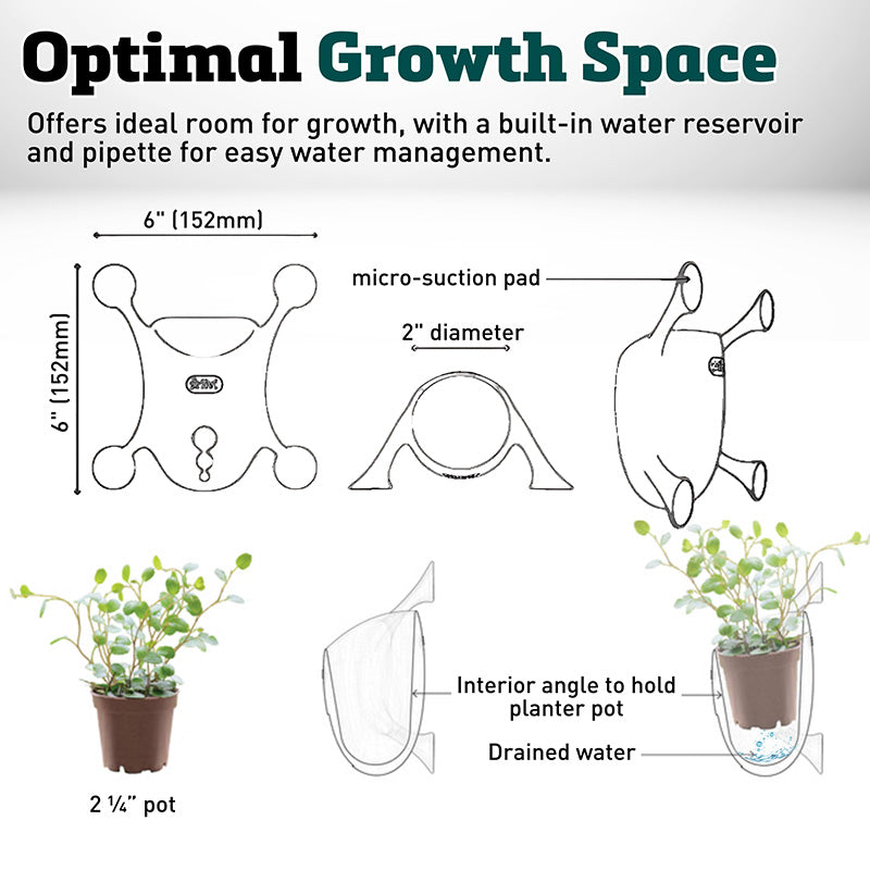 Your plants will get all the light they need as you turn your window into a beautiful vertical garden. Grow your own fresh herbs or decorate areas with succulents and cacti. Just remove the protective film from the palms (micro-suction pads), and Livi is ready to stick to any flat, smooth surface in your home or office with a gentle push.