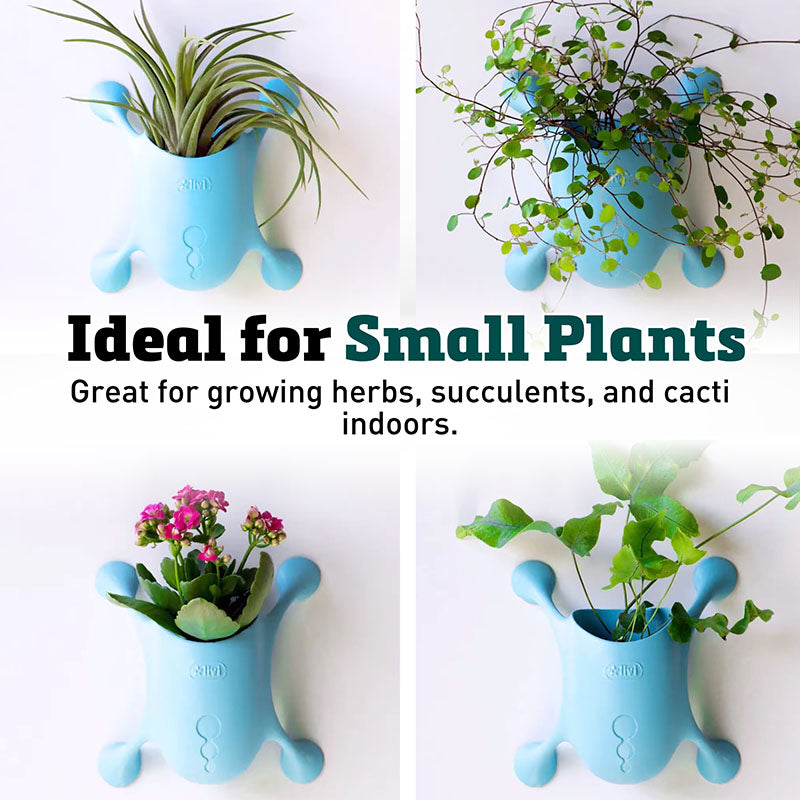 Aqua Livi Pot Color: Blue. Livi Pot creators believe that by reimagining the smallest and most ordinary everyday products, we can create treasured experiences and impact our well-being. Livi is a versatile planter for both vertical and horizontal surfaces. While its design is inspired by nature, Livi’s palms are made of innovative nanotechnology material a microsuction pad that bonds with smooth surfaces like windows again and again.