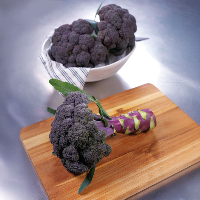 This gorgeous AAS-winning variety has a fully purple head and stem, making it high in anthocyanins and boosting its nutritional value. The large domed heads have a small bead and are great for crown cut or bunching, with excellent tenderness and sweet broccoli flavor. Plants are medium-large, upright, and perform well in cooler seasons. A beautiful addition to both roadside stands and home gardens.