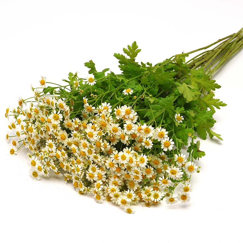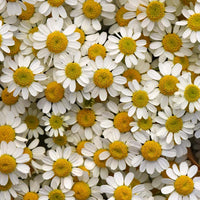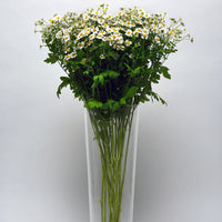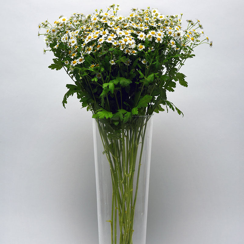 Matricaria vegmo has a fragrant foliage accented with delicate blooms ideal for use as a filler in bouquets, with a good post-harvest life. Height: 28-36”, 12-15” spread. Single features single blooms have white petals and a standout yellow center, this accent is great for seasonal bouquets.
