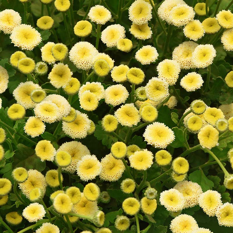 Matricaria vegmo has a fragrant foliage accented with delicate blooms ideal for use as a filler in bouquets, with a good post-harvest life. Height: 28-36”, 12-15” spread. Snowball features double white blooms are small, but each stem packs a punch with many blooms, making this a great filler.