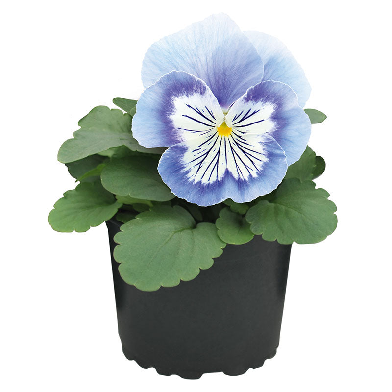 on pale blue petals with a bright yellow dot center. Perfect for standard or